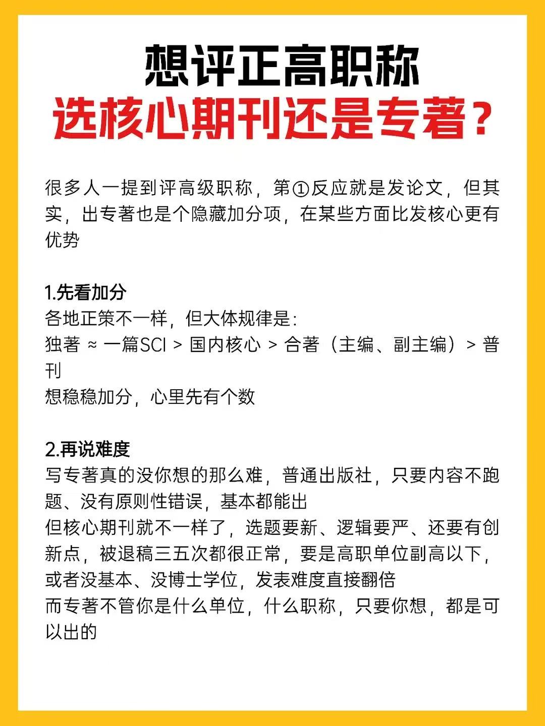 很多人一提到评高级职称,第①反应就是发论文,但其实,出专著也是个隐藏加分项,在某些方面比发核心更有优势