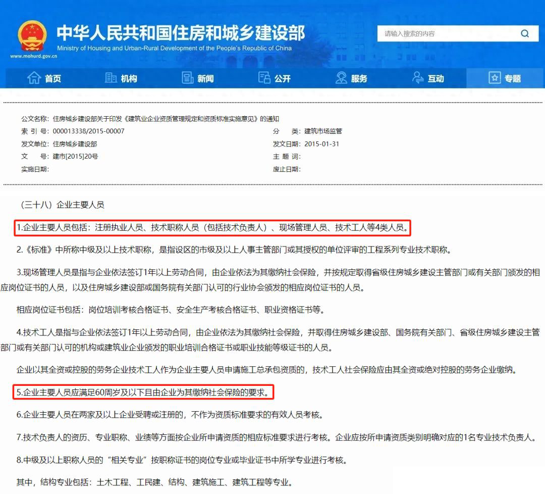 1.关于注册人员,60周岁以内退休人员使用建造师证书的,不再作为有效人员认定。